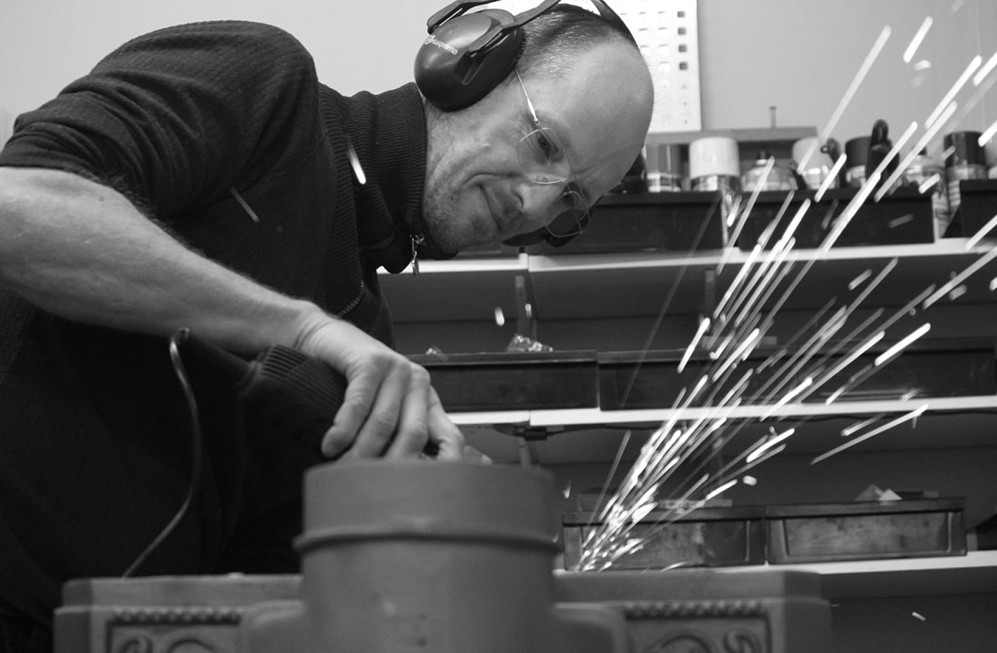 Der große Byskeugnen Gusseisenofen aus Byske – ein echter schwedischer Klassiker. Das Kraftpaket beim Heizen mit langer Speicherung. Weit oben im Norden in "Norrland", nahe Finnland, hat die kleine Manufaktur seit über 50 Jahren Ihre Werkstatt. Massiver Eisenguss mit schweren Schamotteplatten und effektiver Wirkung: Im inneren wird das heisse Rauchgas genau wie bei einem Kachelofen mehrmals umgelenkt, was eine höhere Wärmespeicherung im Ergebnis hat. Die ausgefeilte Konstruktion geht zurück auf den schwedischen Schornsteingfeger Ossi Gustavsson, der im letzten Jahrhundert, nach jahrelangem Tüfteln, "den perfekten Ofen" entwerfen wollte. Das äußere Design stammt von der Künstlerin Mona Hedenström. Gustavsson scheint vieles richtig gemacht zu haben, denn so wird der Ofen seit über 50 Jahren unverändert in kleinen Stückzahlen gebaut.