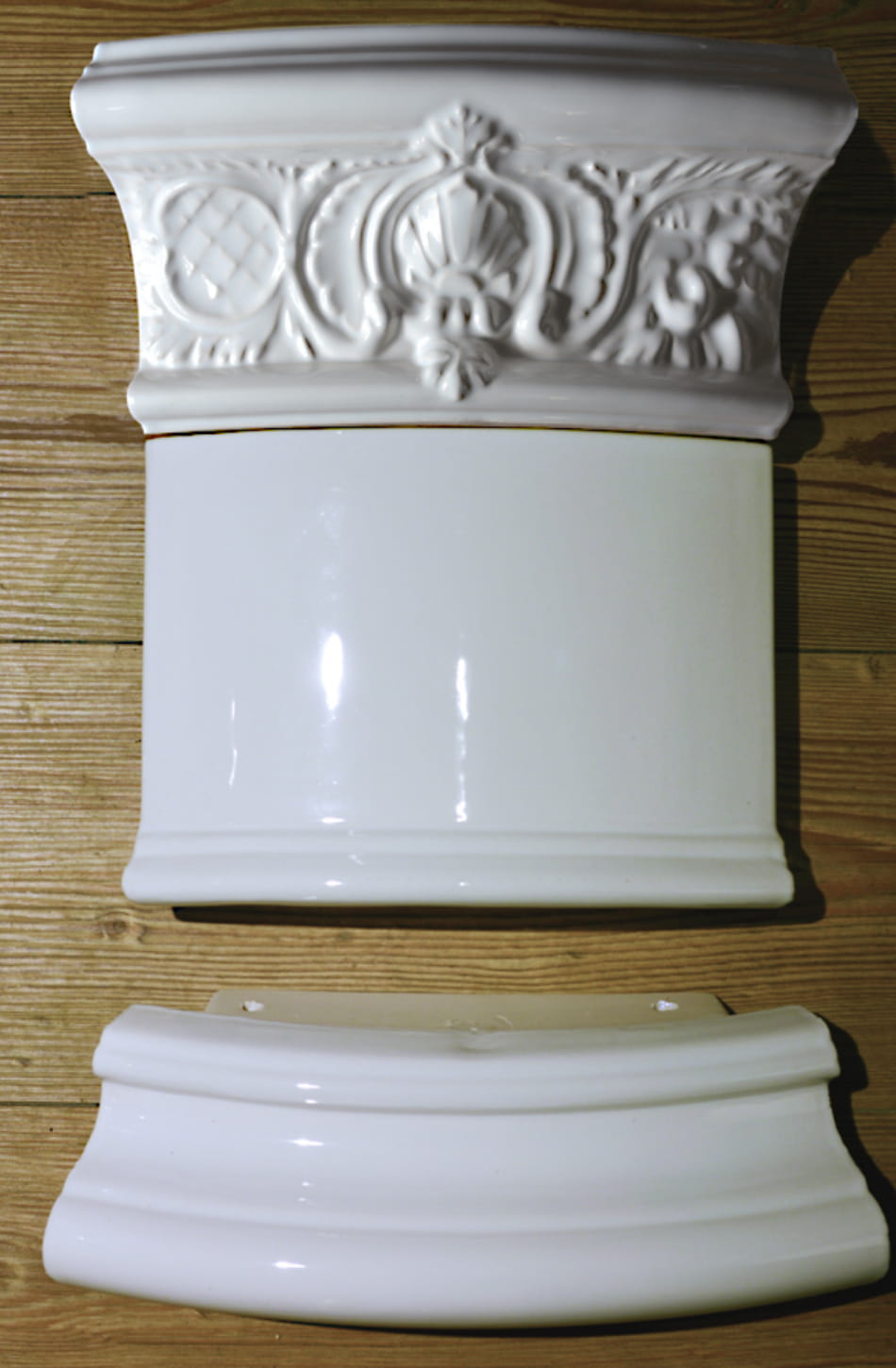 In mühevoller Detailarbeit werden für unsere SwedishclassicsCollection die Guss-Mutterformen der Kacheln von unserem erfahrenen Keramiker komplett neu aufgebaut. Jedes Blatt und jede Blüte werden einzeln modelliert und zu einer Gesamtform arrangiert – immer so nah wie möglich am Original. Von der Mutterform werden dann jeweils Produktionsformen erstellt, die aus Gründen der gleichbleibenden Qualität für maximal 50 Kacheln verwendet werden. So zeichnen sich die Muster der Relief-Motive an der Krone sauber ab.