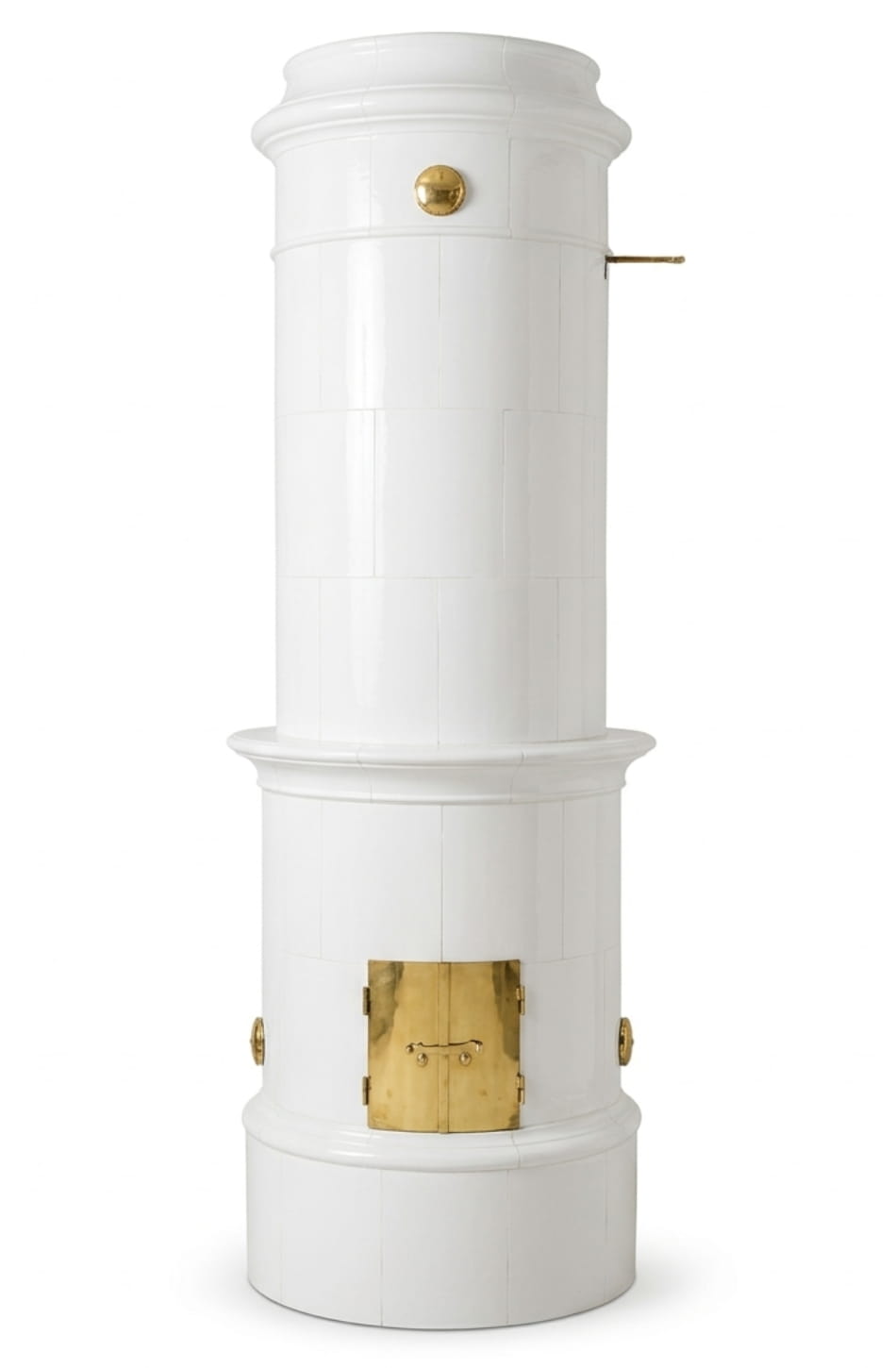 Mittelbandofen antik, ca. 1900. Ein Rundofen für die Raumecke 5/8 Rundung. Original aus Småland in Schweden. Höhe ca. 2,45 m. Schöne Kachelqualität. Metallteile original in Messing. Zu dieser Kachelware benötigen Sie zusätzlich einen typgeprüften Brennraum, wie z.B. den "Swedishclassics ECO", in Deutschland typgeprüft und erfüllt die verschärften Emmissionsvorgaben der BImSchV. Stufe 2.