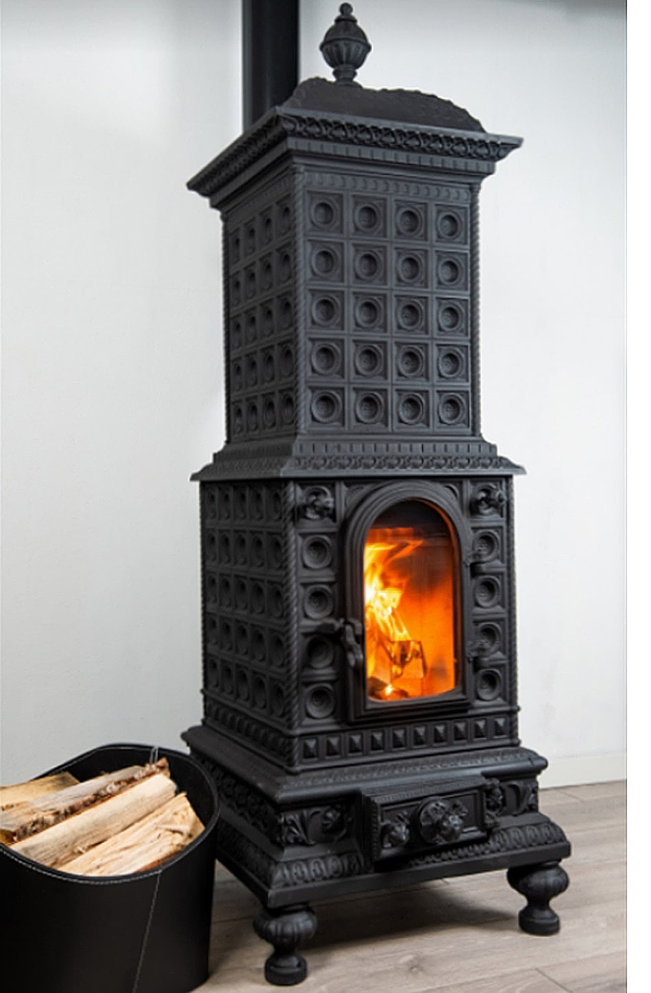 Royal Viking, der König der schwedischen Gusseisenofen. Vor 150 Jahren wurde dieser stattliche Gusseinsofen entworfen, heute wird er als Replikat mit modernster Feuerungstechnik wieder hergestellt. Er erfüllt selbstverständlich die aktuellen verschärften Emmissionsvorschriften wie BimschV. Stufe 2 und trägt zudem das CE Zeichen. Mit seinem ordentlich Eisengewicht von 280 kg überzeugt er nicht nur bei der Warmluftabgabe sondern auch bei der Wärmespeicherung. Der Royal Viking braucht aufgrund seiner imposanten Erscheinung den passenden Raum. Nominelle Heizleistung 6 kW Nutzbarer Leistungsbereich 3-11 Kw. Typgeprüft nach EN 13240. Abstände zu brennbaren Wänden Hinten und Seite 200 mm. Scheitholzlänge 30-33 cm